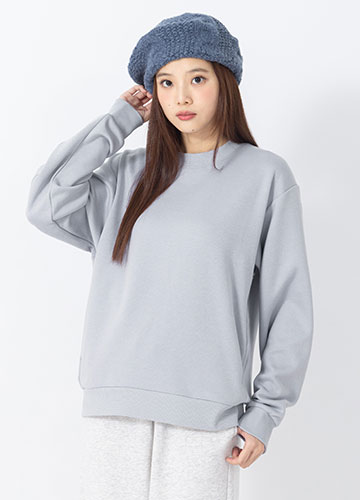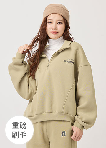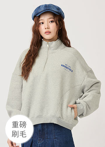 寬鬆落肩刷毛側開衩印字大學T