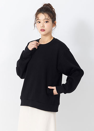 素色基本口袋刷毛大學T