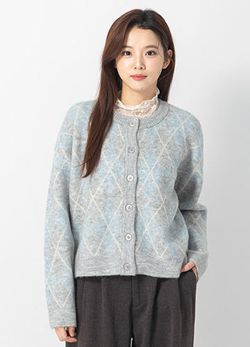 圓領菱格紋開襟外套
