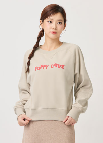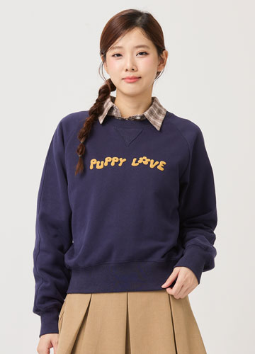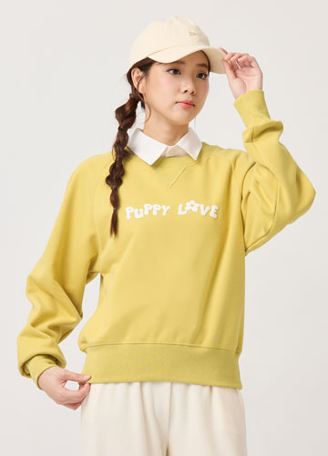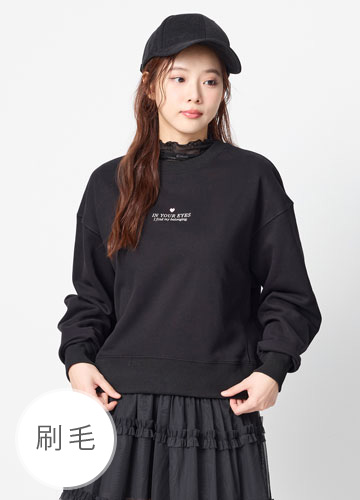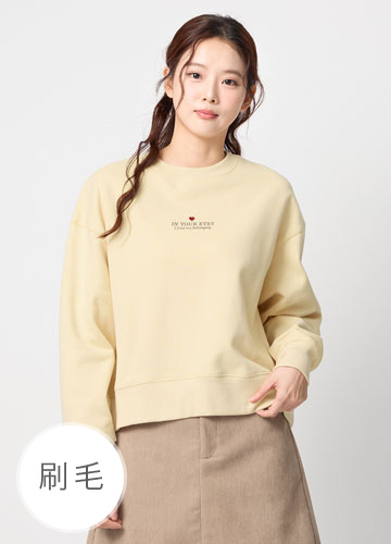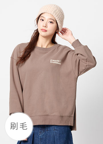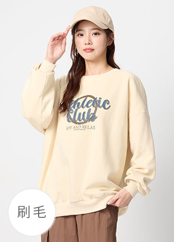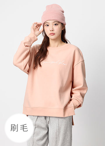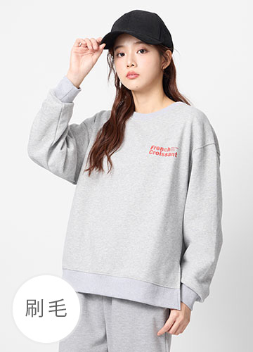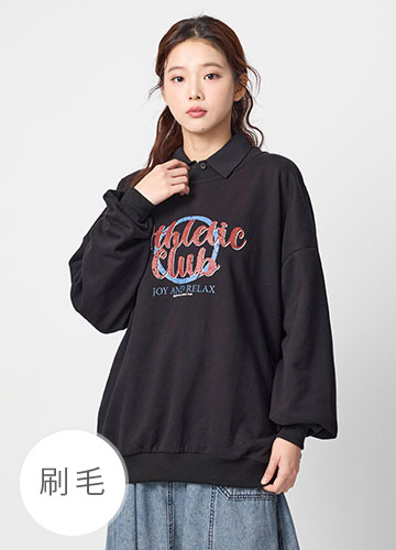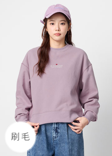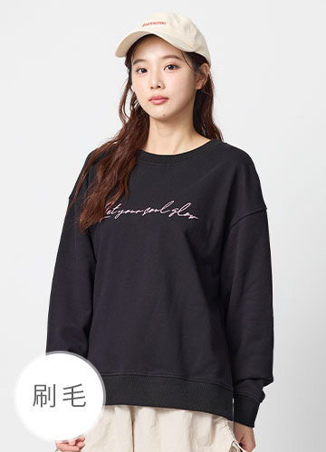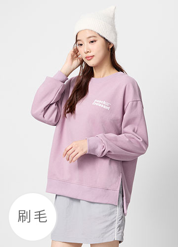 寬鬆落肩刷毛側開衩印字大學T