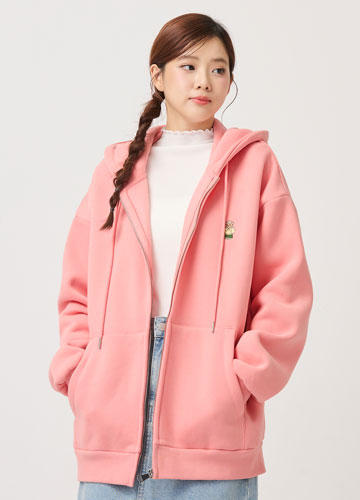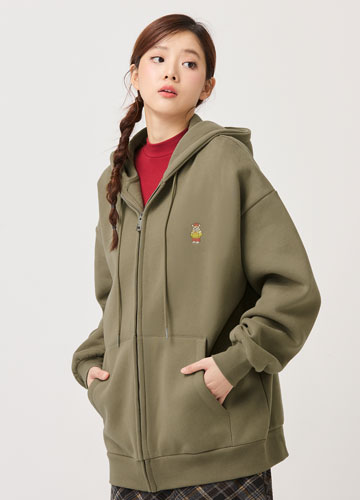 小熊刷毛連帽寬鬆長版外套