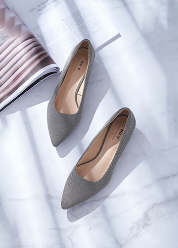 布面素色跟鞋