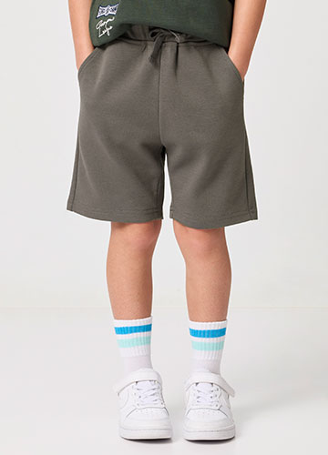 童刷毛素色工裝寬褲