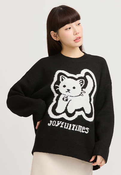 貓咪緹花針織衫